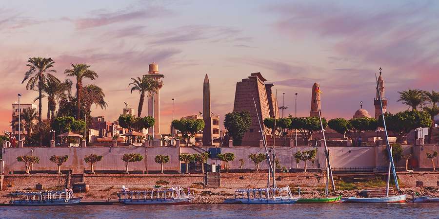 Today we explore the West Bank of the Nile, starting with the Valley of the Queens. Next, visit Deir el-Bahri, whose highlight is the magnificent mortuary temple of Hatshepsut, the queen who declared herself king and whose mummy was discovered in 2007. After lunch at a local restaurant, wander through the Valley of the Kings, with its stunningly painted royal tombs—including those of Tutankhamun, Ramesses III, Ramesses V & VI, and Seti I. Finally, stop to admire the Colossi of Memnon, two massive sandstone statues of Pharaoh Amehnotep III. This evening, board a local wooden sailboat, known as a dahabiya, and enjoy a sunset cocktail and dinner while sailing along the Nile River.